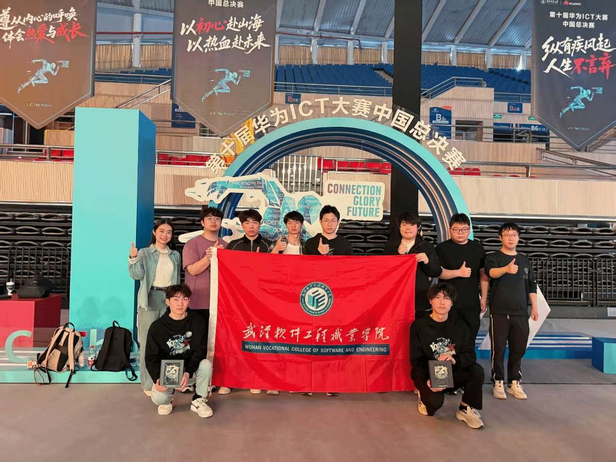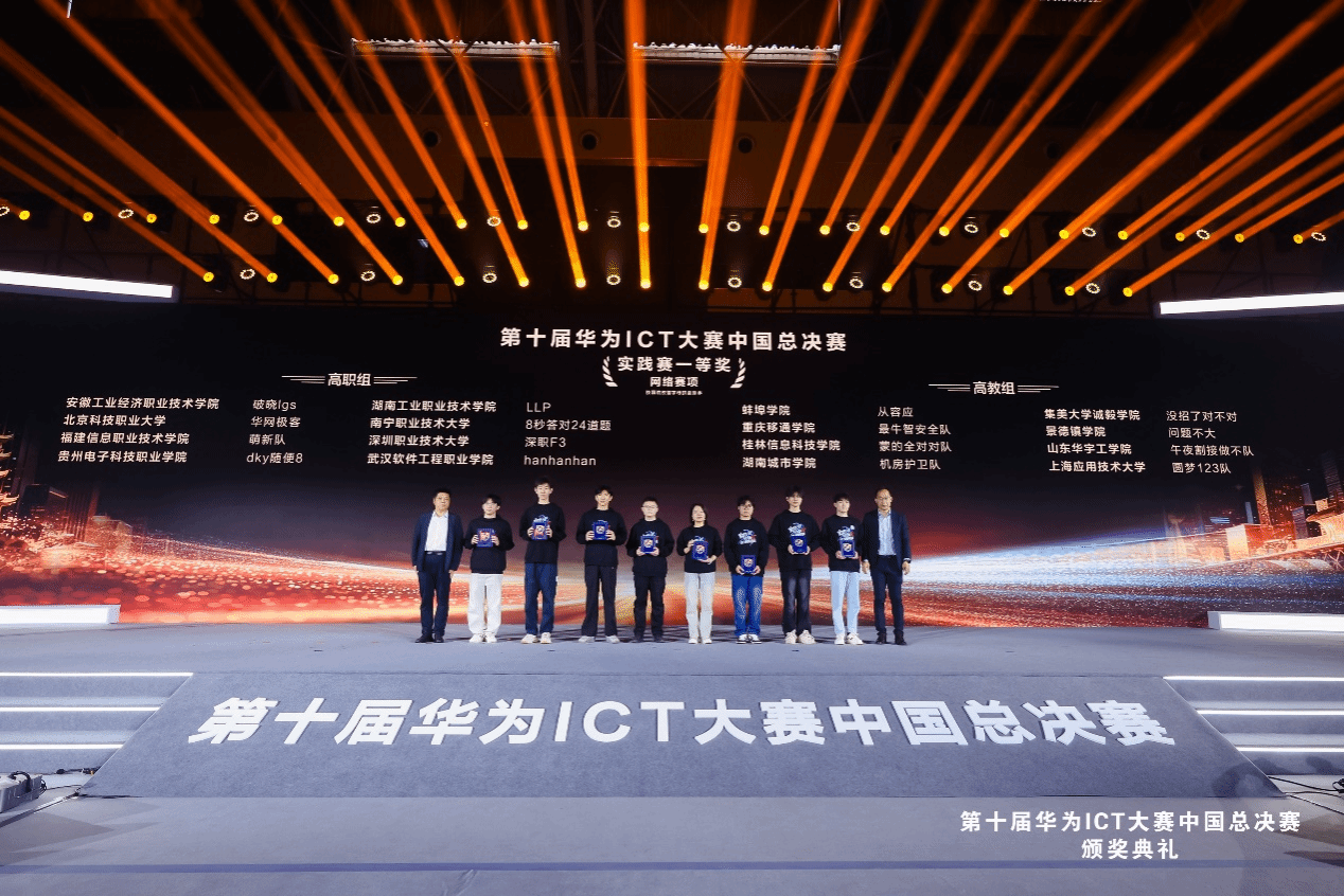 (通讯员 余放 阮婉莹)4月19日,第十届华为ICT大赛全国总决赛闭幕式暨颁奖典礼在华中科技大学光谷体育馆圆满举行。我校计算机学院三支代表队奋勇拼搏、表现卓越,拿下2项全国一等奖和1项全国二等奖。其中宋焱宏老师指导的韩培、韩晨阳、马韩成获网络赛道全国一等奖;余放老师指导的郭臣希、吴伟凡、冯尹磊获编程赛道全国一等奖,两支队伍晋级全球总决赛。黄舒老师指导的汪龙天、余文磊、邹寒获云计算赛道全国二等奖。他们用亮眼成绩书写了学院专业建设与人才培养的优秀成果,尽显学院ICT专业育人实力!
