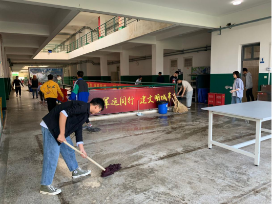 院领导亲自率队,带领学生深入教学楼、信息楼、宿舍楼进行全面大扫除,净化学习、生活环境,营造良好校园文化氛围。辅导员、班主任积极组织学生召开以“当好东道主,文明迎嘉宾”的主题班会,要求同学们提高思想认识,增强荣誉感和使命感,加强自我管理。全体教职员工纷纷下到寝室督促学生整理内务,进行行为规范教育,倡导文明迎军运,做热情有礼东道主。全院上下齐心协力,已随时准备好以最饱满的热情和自信的姿态迎接军运盛会的到来。