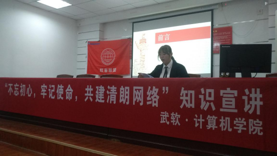 在社区会议中心,红客联盟骨干王涵为社区居民进行了题为《不忘初心,牢记使命,共建清朗网络》的安全知识宣讲,从网络安全到防范电信诈骗,从手机使用习惯到保护个人信息,听得居民们频频点头,课后,还拿出手机向同学们咨询了如何防范网络漏洞。