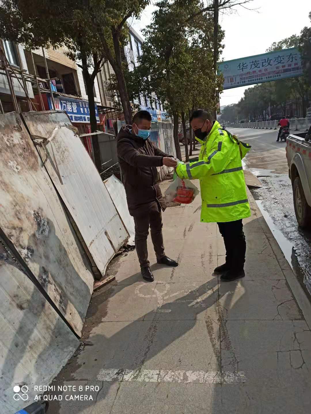 23日封城之前,汪国庆一家正在天门丈母娘家过年,知道封城消息后,他心急如焚却苦于不能回汉,但他没有因此放弃贡献自己的力量,大年三十晚上放弃全家团聚的机会参与到当地村委会协助封村的工作中直至深夜。从那以后,他便投身于当地的封村安保后勤工作,每天都奔波于村口和家中的路上,为家中执勤的工作人员送上一口热饭,向站岗的工作人员道上一句问候,替临时有事的工作人员站岗,俨然成了驻村保卫队中不可或缺的一份子,当地的村民都亲切地称呼他为“保护神”。