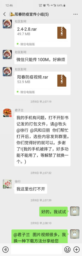 封城以来,整个城市宛如一座死城,静寂得可怕,冠毒凶险,情形严峻。在校党委的号召下,周雯老师来到了阳春社区,从一个“教师”角色转变为“门卫”、“送菜员”、“快递员”、“网格员”。刚入职的时候,周雯老师明显感觉力不从心,小区人口多、工作繁重、居民心里情绪抵触等问题让她经常觉得工作无从下手,一天下来感觉自己就像打乱战一样,工作效率非常低,但她没有退缩,在仔细总结工作经验的基础下,将专业技术融入工作中,不断改进完善,现在,她已经俨然一个小区服务的能手了。例如,在进行入户排查的时候,周雯老师发现一户户打电话进行核查效率非常低,业主情况各式各样,回复的信息有时不准确、有的业主不配合,或者无法联系上的租户,于是她采取了多层筛选、多措并举的核查方式。首先让网格群中的业主尽量填写问卷星,提高效率;针对无反馈的业主,将他们的联系方式制作标准的Android电话簿模板,采用信息化手段,手机助手群发短信,往往还可以收集一部分;最后剩下的大概有四分之一,再采用人工打电话排查。小区应用她的这种方法,让原本3天都做不完的工作在2天内就顺利的完成,而且事半功倍。平日里,周雯老师的微信小程序系统里满满的都是业主网格群中提出的各种分散的意见,她用这种方便快捷的方式记录着群众的需求和建议。
