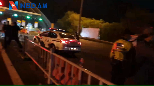23:57,在场执勤人员开始对时。出城车辆也在等待。
