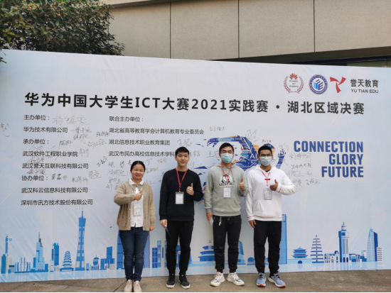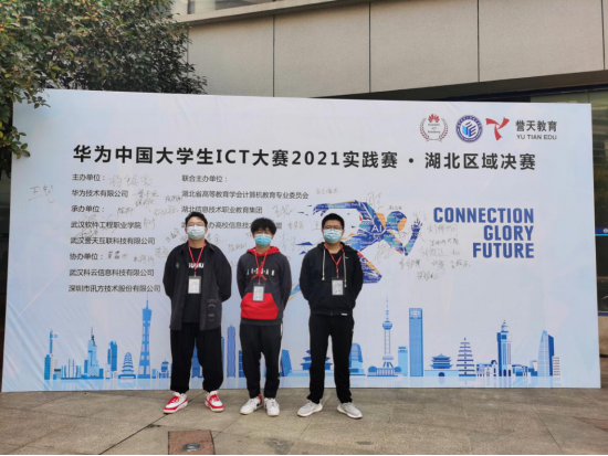 2021年10月30日,计算机学院承办了华为中国大学生ICT大赛2021实践赛湖北区域决赛,华为技术有限公司主办,计算机学院李佳伟和信息学院余宇豪、李响团队获一等奖第一名,杜成帝,邓健康和董瑜榕团队获二等奖,江晓捷,付涵,夏驰团队和刘俊杰,李明根,陈銒钏团队获三等奖。李佳伟,余宇豪,李响团队将作为湖北省云赛道高职组唯一团队参加国赛。