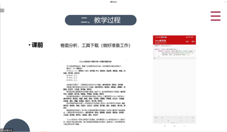关婷婷老师以《Java高级程序设计》这门课为案例分享了自己的教学经验,将教学过程分为了课前、课中和课后。在讲课前先对上学期的《Java程序设计》课程成绩进行了卷面分析,表扬了学习成绩不错的学生,在学生中树立了优秀典型;她在课前还分享了手机端java编译器APP以便没有电脑的同学也能完成线上教学的实操部分。在教学过程中,她利用讲授的知识制作了“趣味点名小工具”,充分调动了学生上课的积极性。在课后,她主动了解学生们的困惑,与其建立良好的师生关系,鼓励学生发挥出自己的特长来克服学习过程中的重重困难。