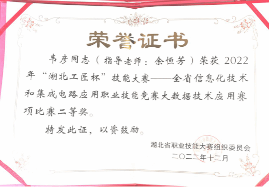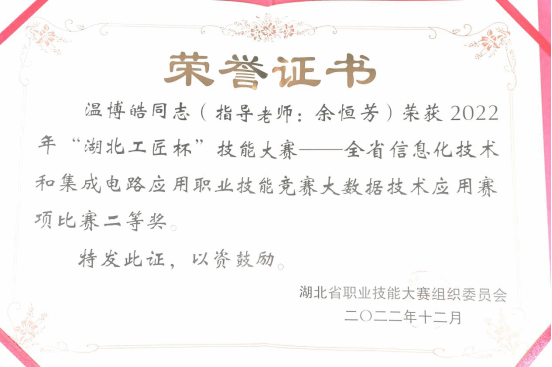 云计算专业团队荣获2022“湖北工匠杯”技能大赛大数据技术应用赛项决赛 二等奖