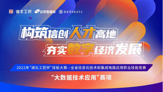 该赛项由省经济和信息化厅、省人力资源和社会保障厅主办,武汉达梦数据库股份有限公司、武汉警官职业学院承办,武汉达梦数据技术有限公司、武汉市软酷网络科技有限公司、湖北省软件企业协会信息技术应用创新工作委员会协办。赛项围绕我省信创和大数据产业相关岗位的实际需求和要求进行设计,培养参赛选手在企业真实项目环境下进行大数据系统搭建和管理(云平台和容器环境)、数据采集、数据处理、数据分析和挖掘、 数据可视化、职业素养等方面的能力,达到“以赛促教、以赛促学、 以赛促改、赛课融通、赛训结合”目的。