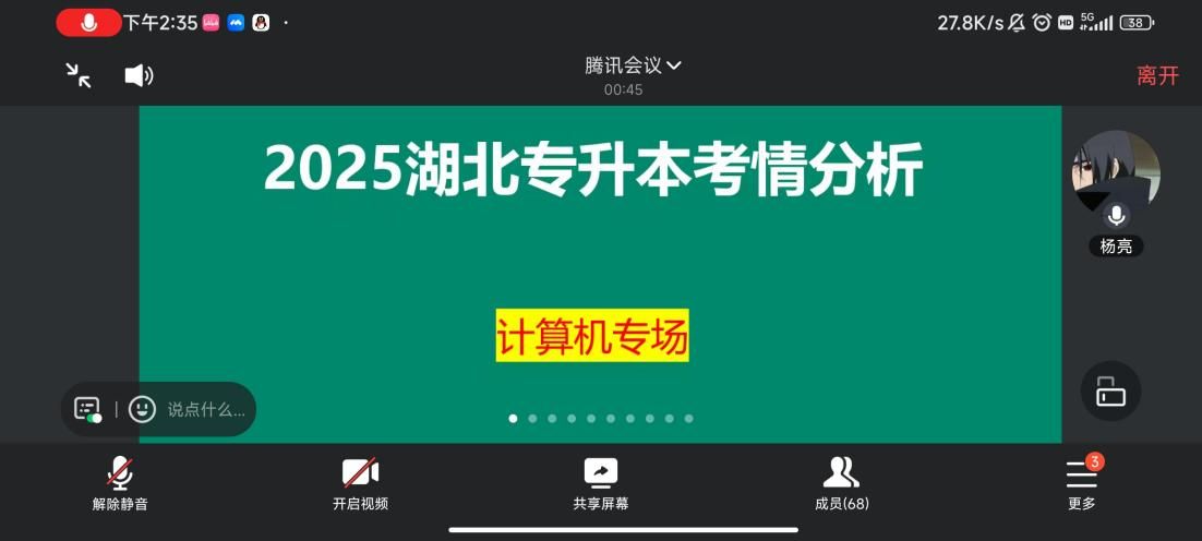随后,专业课老师围绕湖北省2025年专升本最新政策及2024年考情展开深入分析。结合数据,从招生院校分析、热门专业竞争态势、报录比例变化等维度,为同学们勾勒出清晰的升本形势图。并针对计算机类专业进一步剖析常考专业课的命题规律,并提出“三步走”复习法:一是构建知识框架,夯实基础;二是强化真题训练,把握高频考点;三是模拟实战,提升解题速度与准确率。“备考是一场与时间的赛跑,科学规划方能事半功倍。”讲解数据详实、逻辑清晰,赢得线上线下一致好评。
