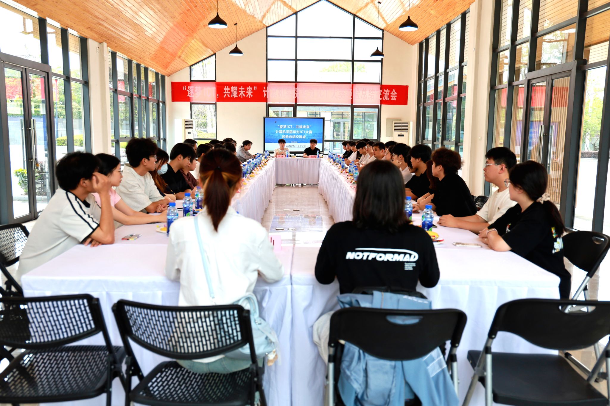 (通讯员 阮婉莹)为深化“以赛促教、以赛促学”育人理念,总结参赛经验、凝聚奋进力量,计算机学院于5月27日在武软客厅举办“逐梦ICT 共耀未来”华为ICT大赛经验总结交流会。华为技术有限公司湖北省产业发展与生态部人才发展总监万艾波,学校副校长孙美华等领导和大赛获奖师生代表共计45人齐聚一堂,共同回顾参赛历程,共绘产教融合崭新蓝图。