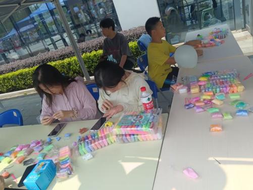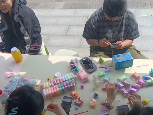 移步至 “压力变形记 ——DIY 工坊”,彩色的粘土与彩泥在桌上整齐排列,仿佛在邀请同学们倾诉内心。现场气氛热烈,有人专注地捏出小章鱼,象征顽强的生命力;有人用交错的线条表现复杂的世界。创作完成后,网络2303班的梁美玲同学说:“捏粘土时,我仿佛进入了一个只属于自己的世界。指尖揉捏彩泥的触感,让紧绷的神经渐渐松弛。把对考试的焦虑塑造成歪斜的书本,再重新 “修复” 成整齐的模样,这个过程就像将压力一点点化解。完成作品时,内心满是成就感,原来释放压力可以如此简单又治愈。” 思维的火花不断碰撞,原本象征压力的雕塑,在讨论中被赋予了积极意义。大家你一言我一语,将原本沉重的压力一点点 “变形” 为积极向上的能量。优秀作品随后被陈列在活动现场展览,让大家在艺术创作中学会了转化负面情绪,增强心理韧性。