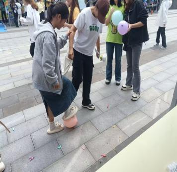 “踏破心霾” 环节现场,气球爆破声此起彼伏,交织成一首解压交响曲。同学们握着写满烦恼的气球,眼神中既有对压力的宣泄渴望,也有即将释怀的期待。一位同学兴奋地说:“把烦恼写在气球上,然后用力踩爆它,那种感觉太解压了,感觉心里轻松了好多!”简单的动作,却让积压已久的负面情绪得到释放,现场弥漫着轻松愉悦的氛围。