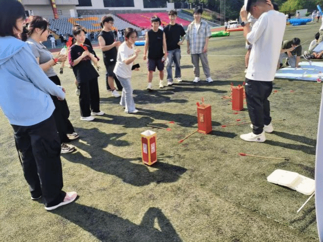 比赛全程气氛热烈,加油声、欢笑声、喝彩声此起彼伏。师生们热情投入,在各项比赛中奋力拼搏,许多队伍积极商讨战术、反复尝试,充分展现了强烈的团队意识和进取精神。压轴项目“拔河比赛”更是将气氛推向高潮,每队 12 名队员在指挥员带领下,齐心协力,为集体荣誉而战,呐喊助威声震耳欲聋。