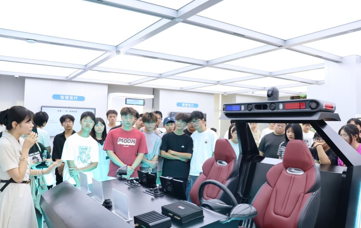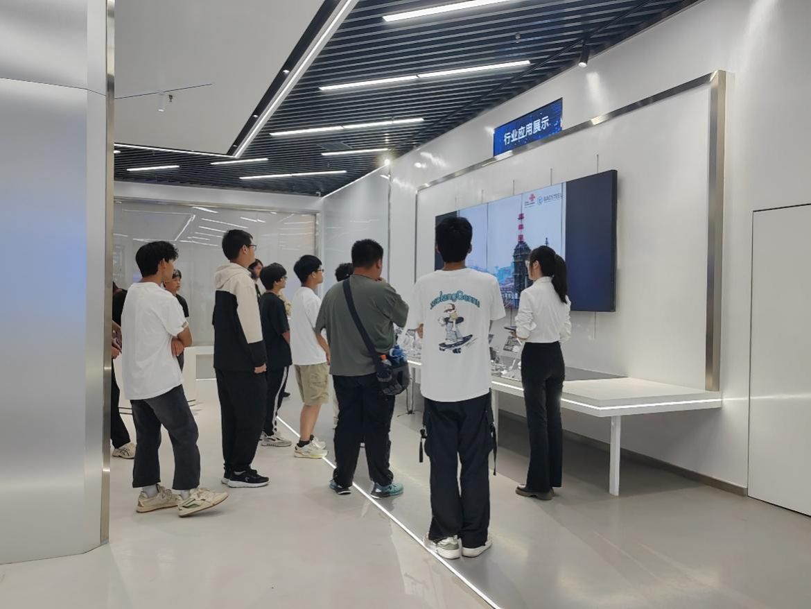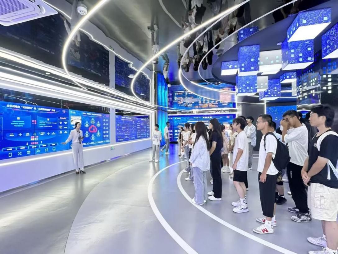 计算机网络技术专业25级新生到中国电信金银湖运行基地参观学习,在互动体验环节,同学们亲手操作智能交互设备,体验自然语言处理、数字孪生等技术在政务、金融、智慧城市等领域的实际应用,切实感受到计算机技术的广泛应用与社会价值。