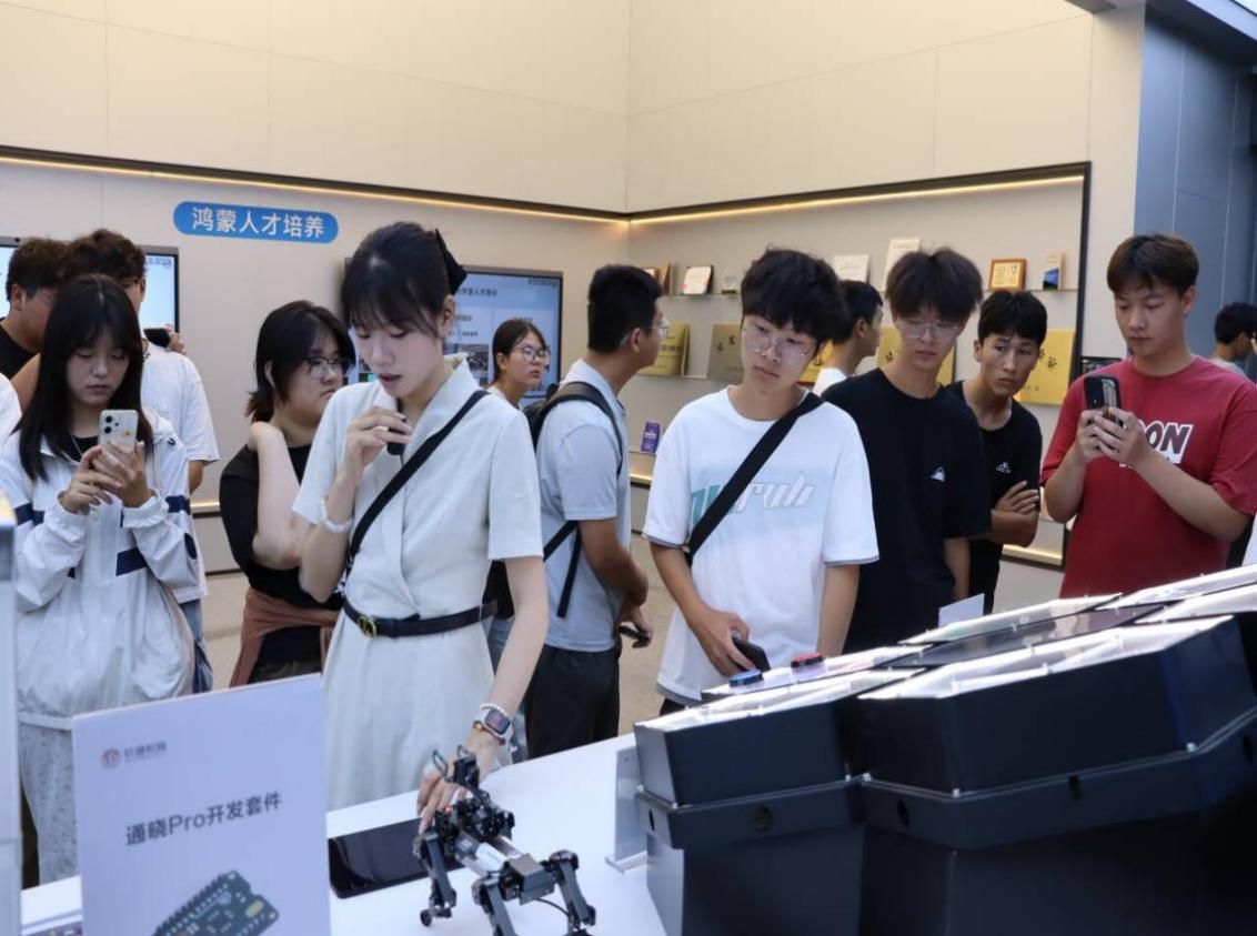 移动互联应用技术专业25级新生到华为(武汉)创新中心参观学习,企业讲解员给学生们讲解企业新业态。