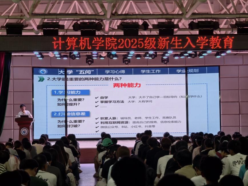 (通讯员:段海晶 摄影:邓李托)2025年9月27日,计算机学院有幸邀请到全国道德模范汪勇、武汉玄云网络科技有限公司总经理丁子恒,湖北警官学院学生彭正杨,在读网络2301班辛治君4位优秀学长,组团为我院25级新生送来“成长心语”。
