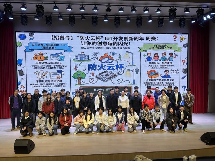 在随后的互动交流环节,师生们踊跃发言、积极提问,与李海成总经理围绕人工智能技术应用边界、如何进行二次开发路径等问题展开深入交流。互动结束后,计算机学院孙海南博士现场宣布,由武汉软件工程职业学院与防火云(北京)科技有限公司联合举办的“防火云杯”AIoT开发创新周年周赛”启动,鼓励同学们将专业知识转化为落地成果,在赛事中锤炼技术、提升创新能力,以物联网与AI技术解决社会实际问题。