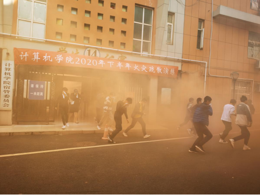 为保障此次演练安全顺畅,计算机学院全体辅导员通过召开消防知识主题班会等方式,将此次活动方案提前通知到每一名学生,以保证此次疏散任务的有条不紊,坚决避免发生浓烟窒息、推搡踩踏等事故,并安排专人留守,保障各楼层宿舍财产安全。