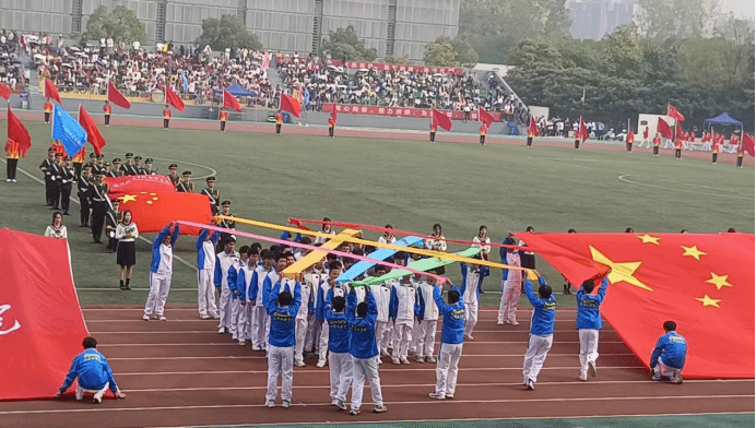 26日下午14时伴随着《运动员进行曲》的鼓点,激动人心的运动会正式拉开帷幕。铿锵有力的国旗护卫队,随后红旗队、鲜花队相继登场,紧接着各学院的方队也纷沓而来。“剑指苍穹,气势如虹,计算机院,卧虎藏龙”伴随着嘹亮的口号,计算机学院方队昂首阔步,完美诠释青年学子的朝气蓬勃。紧接着学院方队传统文化与现代舞蹈艺术相碰撞,师生沉浸在一片欢乐的海洋中。