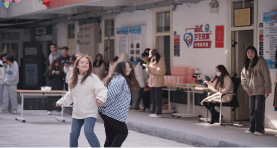 两人组成一组配合完成夹起乒乓球传递和背靠背运气球,在规定时间5分钟内运球数量多的小组获胜。看似小小的活动,实则蕴含大大的道理,充满巧思的小游戏,充分考验同学们的配合程度、默契程度、耐心和自控力。在此过程中,同学们充分释放自己的压力,同时也将自己的快乐幸福传递给别人。