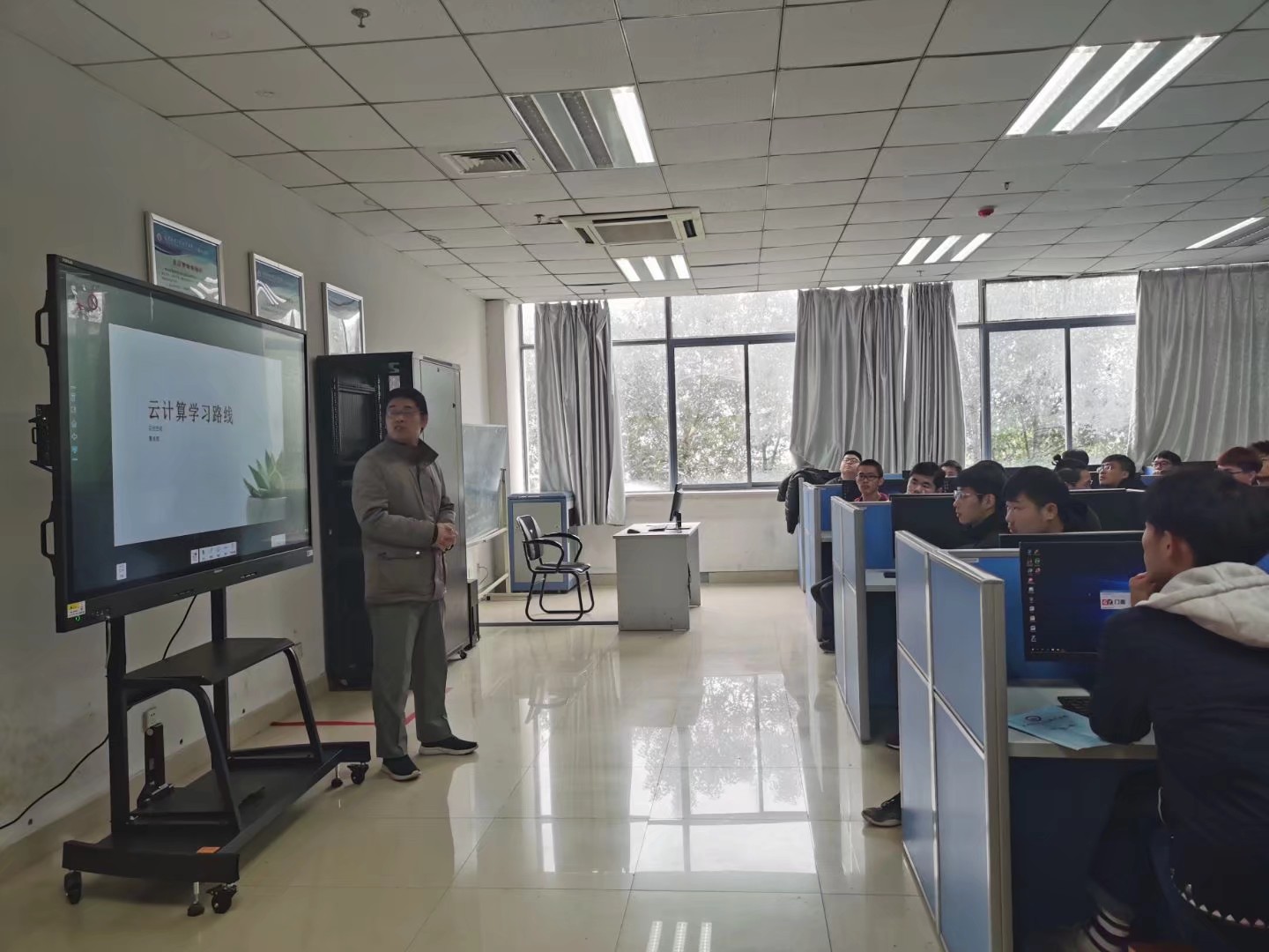 云创空间:“云创空间”是云计算技术与应用专业的第二课堂活动,由云计算技术与应用专业教师和优秀学生创建于2018年11月底。云创空间配备有专业实训设备和固定的活动场所,在老师的指导下,云计算兴趣学习小组的学生长期开展课外自学、讨论学习、备考备赛和科研活动。在云创空间学习和参与技术学习交流的学生日均人流量高达20余人,最高达50余人,为学生学习交流、提升大学生创新创业能力提供温馨、优良的环境。成立至今,已成功举办过20余次交流活动,在此学习过的学生中有40余人获得省市级以上比赛奖项10余项。